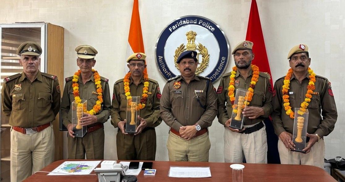 फरीदाबाद पुलिस प्रशासन के 4 पुलिसकर्मियों की सेवानिवृत्ति के अवसर पर पुलिस आयुक्त कार्यालय, सेक्टर-21C में एक सम्मान पूर्वक विदाई समारोह का आयोजन किया गया। कार्यक्रम में सहायक पुलिस आयुक्त नरेन्द्र कुमार, भलाई सहायक उपनिरीक्षक सहित पुलिस आयुक्त कार्यालय के अन्य अधिकारी व कर्मचारी उपस्थित रहे।
