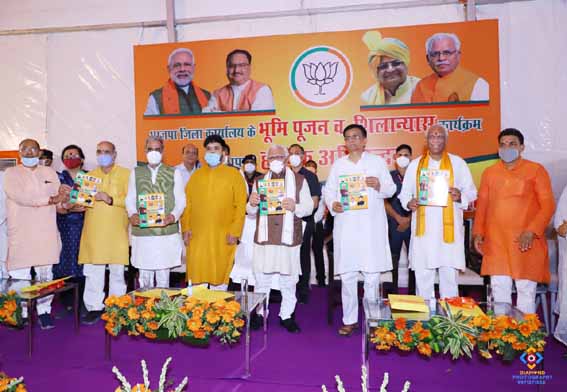 फ़रीदाबाद:प्रदेश के मुख्यमंत्री मनोहर लाल ने फरीदाबाद में बनने वाले जिला भाजपा कार्यालय के भूमिपूजन और शिलान्यास के कार्यक्रम में भाजपा युवा मोर्चा जिला मीडिया प्रभारी मुकुल चोपड़ा द्वारा तैयार की गई हरियाणा की पत्रिका ‘बदलता हरियाणा, बढ़ता हरियाणा’ का विमोचन भी किया।