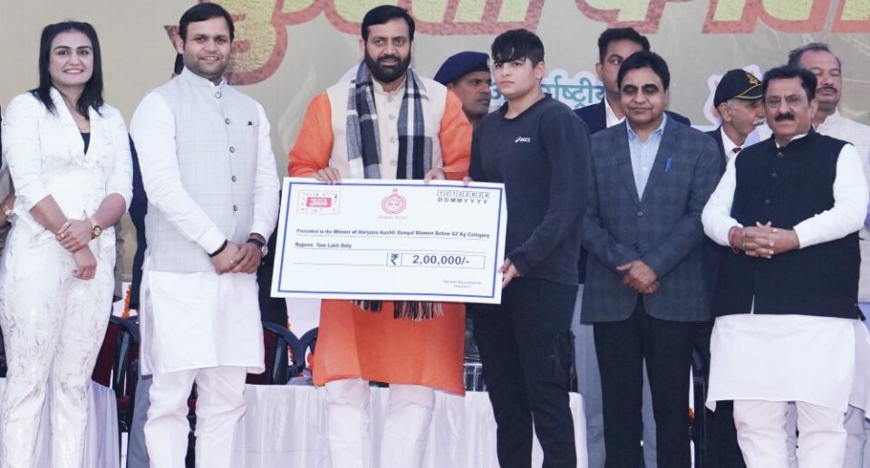 मुख्यमंत्री आज कुरुक्षेत्र में हरियाणा कुश्ती दंगल के समापन अवसर पर बोल रहे थे। इस अवसर पर पूर्व मंत्री सुभाष सुधा भी उपस्थित रहे। इससे पहले, मुख्यमंत्री ने विजेता पहलवानों को सम्मानित किया और उन्हें बधाई एवं शुभकामनाएं दी। उन्होंने कहा कि पिछले दो दिनों से इस दंगल में जिला और क्षेत्रीय स्तर पर 500 से अधिक पहलवानों ने भाग लिया। यह गर्व का विषय है कि आज कुश्ती के विभिन्न श्रेणियों के फाइनल राउंड में पहुंचे 32 पहलवानों में से 16 लड़कियां हैं।