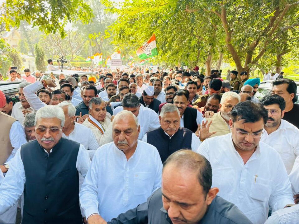चंडीगढ़:हरियाणा कांग्रेस ने आज मनरेगा में बीजेपी सरकार द्वारा किए गए बदलावों के खिलाफ जोरदार प्रदर्शन किया। इसमें पार्टी प्रभारी बीके हरिप्रसाद, पूर्व मुख्यमंत्री और नेता प्रतिपक्ष भूपेंद्र सिंह हुड्डा, प्रदेश अध्यक्ष राव नरेंद्र, पूर्व प्रदेश अध्यक्ष उदयभान, सांसद दीपेंद्र सिंह हुड्डा, जयप्रकाश जेपी, वरुण मुलाना, सतपालब्रह्मचारी,जितेंद्र बघेल समेत तमाम वरिष्ठ नेता, सांसद, विधायक और हजारों कार्यकर्ता शामिल हुए।