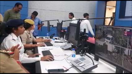सीएम योगी ने इंट्रीग्रेटेड सिक्युरिटी एवं ट्रैफिक मैनेजमेंट सिस्टम का किया निरीक्षण।