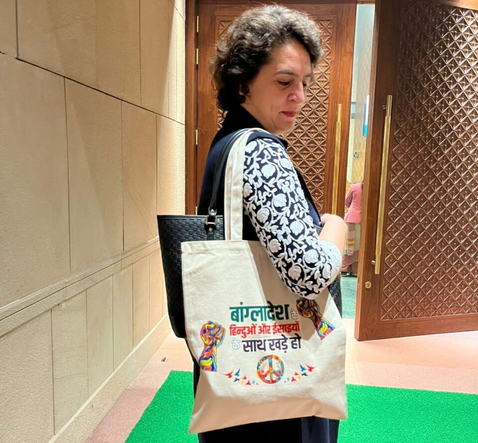 नई दिल्ली’ कल संसद में हस्तक्षेप के जरिए बांग्लादेश में हिन्दुओं, ईसाइयों व अल्पसंख्यकों पर हो रहे हमले के खिलाफ आवाज उठाने के बाद आज वायनाड सांसद प्रियंका गांधी समेत कांग्रेस पार्टी के सांसदों ने संसद में प्रदर्शन कर बांग्लादेश के हिंदुओं, ईसाइयों व अल्पसंख्यकों के समर्थन में आवाज उठा .