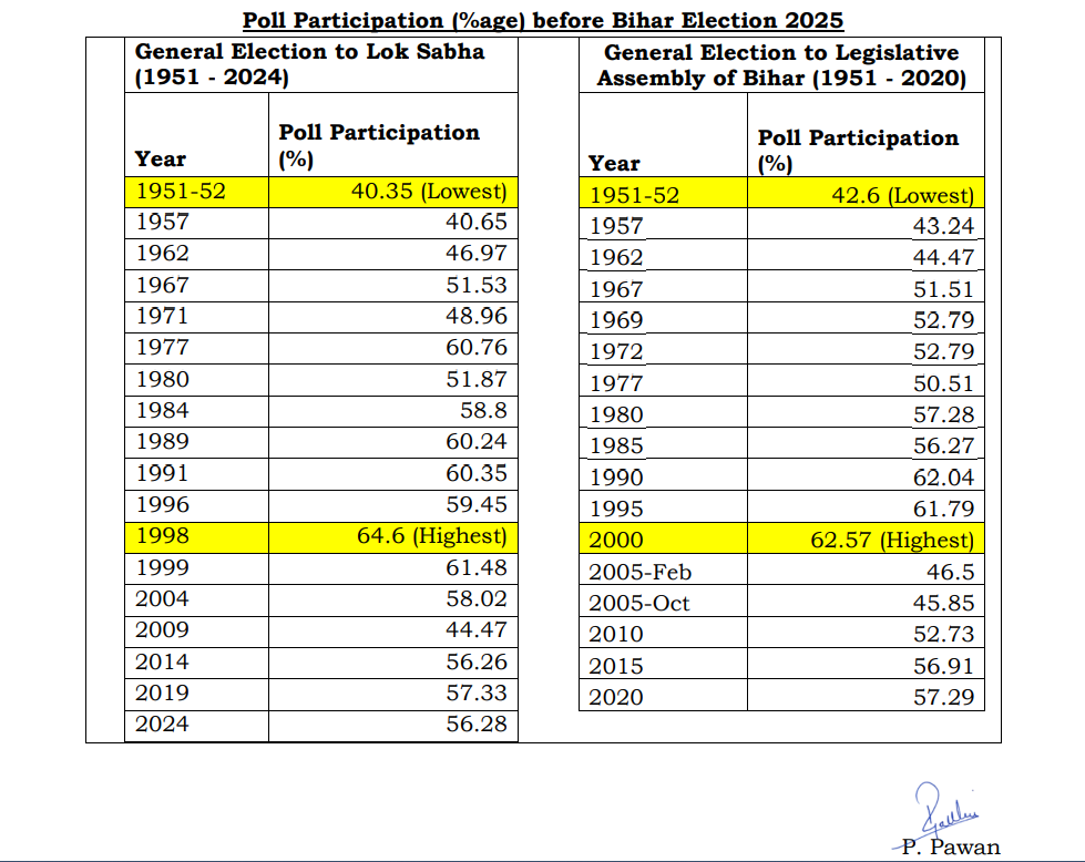 1.बिहार विधानसभा चुनाव का पहला चरण आज शांतिपूर्ण ढंग से उत्सव के माहौल में संपन्न हुआ, जिसमें बिहार के इतिहास में अब तक का सर्वाधिक 64.66% मतदान दर्ज किया गया।