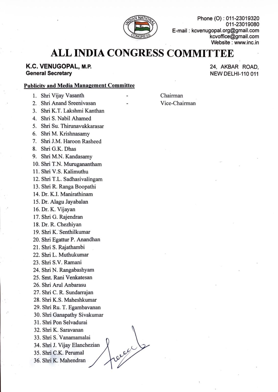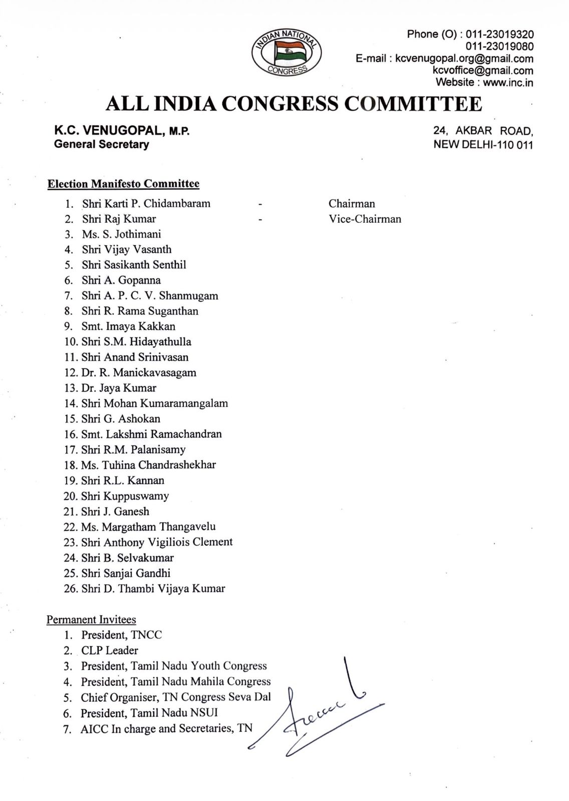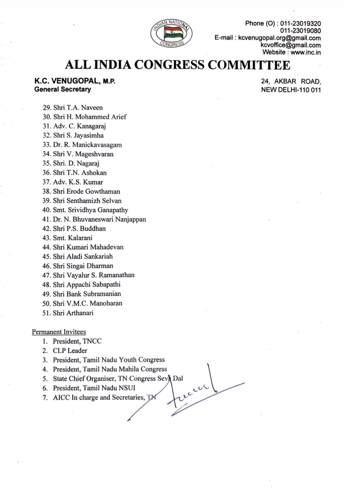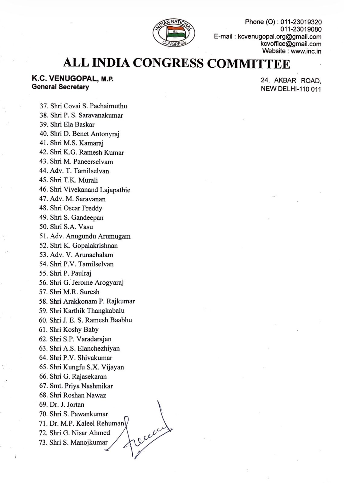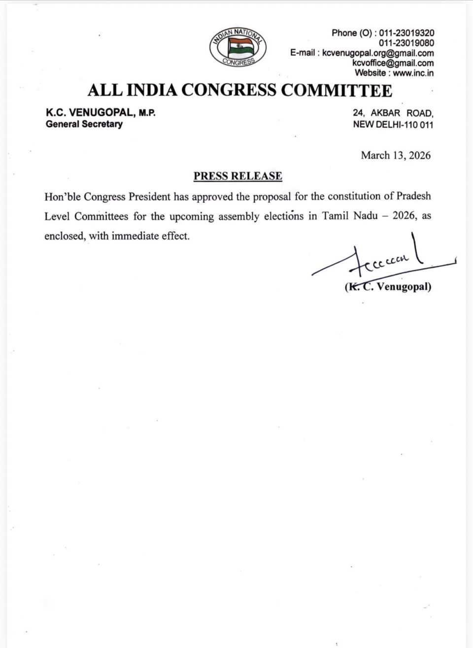 नई दिल्ली:कांग्रेस अध्यक्ष मल्लिकार्जुन खरगे ने आज शनिवार को तमिलनाडु में आगामी विधानसभा चुनाव-2026 के लिए प्रदेश स्तरीय समितियों के गठन के प्रस्ताव को तत्काल प्रभाव से मंजूरी दे दी, है। पार्टी द्वारा जारी की गई लिस्ट को इस खबर में प्रमुखता से प्रकाशित की गई है, जिसमें सभी के नाम पढ़ सकते है।