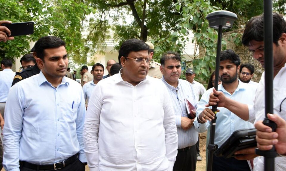 फरीदाबाद में जमीन सीमांकन की नई तकनीक का डेमो, कैबिनेट मंत्री विपुल गोयल और डीसी रहे मौजूद।