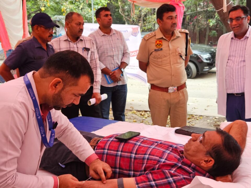 पंचकूला:आज विश्व स्वास्थ्य दिवस के अवसर पर सेक्टर-1 स्थित पुलिस उपायुक्त कार्यालय के बाहर पारस हेल्थ पंचकूला व पंचकूला पुलिस की ओर से रक्तदान शिविर का आयोजन किया गया। इस रक्तदान शिविर में पुलिसकर्मियों सहित आम नागरिकों ने भी स्वेच्छा से रक्तदान किया।कार्यक्रम की शुरुआत एसीपी अजीत सिंह ने की। उन्होंने रक्तदान करने वालों से मुलाकात कर उनकी सराहना की और उन्हें असली ‘दानवीर’ बताया। शिविर में कुल 42 पुलिसकर्मियों और नागरिकों ने रक्तदान कर मानवता की मिसाल पेश की। कार्यक्रम के समापन पर एसीपी अजीत सिंह ने रक्तदाताओं को सर्टिफिकेट वितरित किए और धन्यवाद व्यक्त किया।