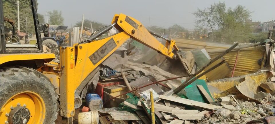फरीदाबाद: डीटीपी एनफोर्समेंट, फरीदाबाद की टीम ने आज शुक्रवार को अतिक्रमण एवं अवैध कब्ज़ा हटा ओ अभियान के तहत ओखला एन्क्लेव, दुर्गा बिल्डर्स ,सेक्टर-91,फरीदाबाद में अतिक्रमण एवं अवैध कब्जे को हटाया गया, जिनमें 17 अस्थाई ढांचे, जैसे मांस बाजार, भवन निर्माण सामग्री विक्रेता व दो बाउंड्रीवाल ,और दो दुकानें सहित अन्य रेहड़ी-पटरी-खोखे शामिल है। इस तोड़फोड़ की कार्रवाई में एक अर्थमूवर मशीन का इस्तेमाल किया गया,यह तोड़फोड़ की कार्रवाई भारी पुलिस बल के साए में की गई है। यह जानकारी डीटीपी एनफोर्समेंट यजन चौधरी ने दी है। सवाल के जवाब में उनका कहना है कि उनकी तोड़फोड़ की यह कार्रवाई आगे भी जारी रहेगी।