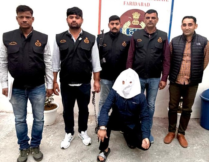 फरीदाबाद: व्यापारी के बेटे हिमांशु भाटिया की गत 24 -25 की देर रात को चाकू मारकर सनसनीखेज हत्या करने के मामले में आज बुधवार को डीएलएफ क्राइम ब्रांच , फरीदाबाद की टीम ने आज बुधवार को गिरफ्तार कर लिया, जिसका नाम भारत पंडित, निवासी सी ब्लॉक, टाउन नंबर -1, फरीदाबाद है। इस संबंध में थाना कोतवाली , फरीदाबाद में गिरफ्तार आरोपित भारत पंडित के खिलाफ हत्या सहित कई धाराओं के तहत मुकदमा दर्ज है। पुलिस प्रवक्ता ने आज जानकारी देते हुए बताया कि मंगलवार ,25 नवंबर-2025 को रवि भाटिया निवासी  टाउन नंबर 1 ने पुलिस को दी शिकायत में बताया कि उसके बेटे हिमांशु भाटिया उम्र 27 साल की भारत  पंडित निवासी सी ब्लॉक, टाउन नंबर 1 ने चाकू मार का हत्या कर दी ।जिस पर थाना कोतवाली में हत्या की धारा के अंतर्गत मामला दर्ज किया गया।