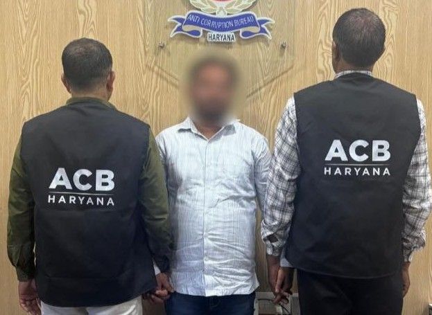 फरीदाबाद: नीलामी अभिलेखक सतीश एक लाख 30 हजार रूपए रिश्वत लेते हुए रंगे हाथों पकड़ा गया।