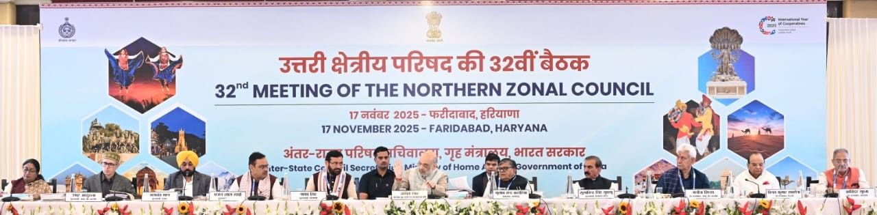 फरीदाबाद: केंद्रीय गृह मंत्री व उत्तरी क्षेत्रीय परिषद चेयरमैन अमित शाह की अध्यक्षता में सोमवार को फरीदाबाद के सूरजकुंड में उत्तरी क्षेत्रीय परिषद की 32वीं बैठक का आयोजन किया गया। इस बैठक में हरियाणा के मुख्यमंत्री व उत्तरी क्षेत्रीय परिषद के वाइस- चेयरमैन नायब सिंह सैनी, पंजाब के मुख्यमंत्री भगवंत मान, हिमाचल प्रदेश के मुख्यमंत्री सुखविंदर सुक्खू, राजस्थान के मुख्यमंत्री भजन लाल शर्मा, दिल्ली के उप राज्यपाल विनय कुमार सक्सेना, दिल्ली की मुख्यमंत्री श्रीमती रेखा गुप्ता, जम्मू एवं कश्मीर के उप राज्यपाल मनोज सिन्हा, जम्मू एवं कश्मीर के मुख्यमंत्री उमर अब्दुल्ला, लद्दाख के उप राज्यपाल कविंदर गुप्ता, चंडीगढ़ के प्रशासक गुलाब चंद कटारिया, हरियाणा के राजस्व मंत्री विपुल गोयल, सहकारिता मंत्री डॉ अरविंद शर्मा सहित संबंधित राज्यों व केंद्र शासित प्रदेशों के उच्चाधिकारियों ने हिस्सा लिया।