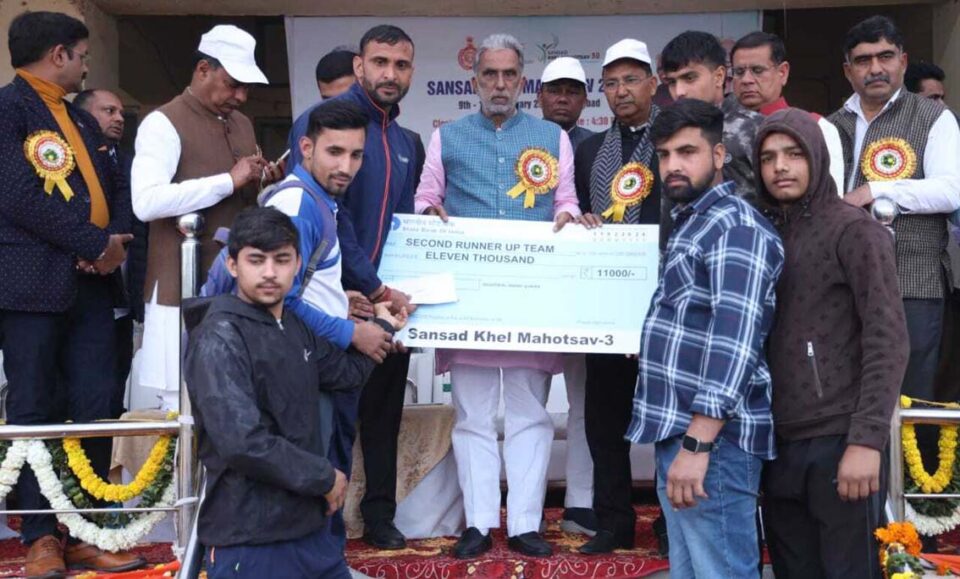 फरीदाबाद: बच्चों में छुपी हुई प्रतिभाओं को निखरना सांसद खेल महोत्सव का मुख्य उद्देश्य है। इसी उद्देश्य की पूर्ति के लिए सांसद खेल महोत्सव का आयोजन किया जाता है। इस वर्ष गत 9 से 11 फरवरी तक तृतीय सांसद खेल महोत्सव का आयोजन केंद्रीय ऊर्जा एवं भारी उद्योग राज्य मंत्री कृष्ण पाल गुर्जर के मार्गदर्शन में जिला प्रशासन फरीदाबाद तथा पलवल द्वारा फरीदाबाद के सेक्टर 12 में स्थित खेल परिसर में किया गया, जिसका रविवार को समापन केंद्रीय राज्यमंत्री कृष्णपाल गुर्जर द्वारा विजेता खिलाड़ियों को इनाम देकर किया गया।इस अवसर पर उनके साथ विधायक नरेंद्र गुप्ता, विधायक राजेश नागर , विधायक दीपक मंगला, विधायक नयनपाल रावत, बीजेपी जिला अध्यक्ष राजकुमार वोरा , अजय गौड़, जिला परिषद के चेयरमैन विजय लोहिया, पूर्व मेयर देवेंद्र चौधरी, डीसी विक्रम सिंह सहित प्रशासन के अधिकारी और विभिन्न खेलों के खिलाड़ी मौजूद रहे।केंद्रीय राज्य मंत्री कृष्णपाल गुर्जर ने सांसद खेल महोत्सव के समापन समारोह को संबोधित करते हुए कहा कि खेलों का जीवन में बहुत महत्व है।