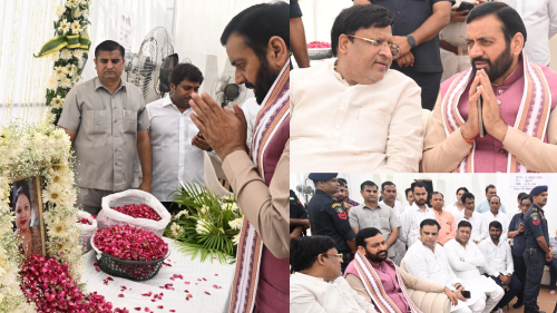 फरीदाबाद: मुख्यमंत्री नायब सिंह सैनी आज मंत्री विपुल गोयल के निवास पर पहुंचे,भाभी रेनू गोयल के निधन पर जताया शोक।