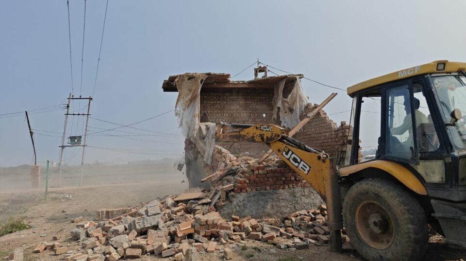 फरीदाबाद: डीटीपी एनफोर्समेंट, फरीदाबाद की टीम ने आज शुक्रवार को ग्राम लधीयापुर, तहसील गौछी, जिला फरीदाबाद में अवैध रूप से लगभग 13 एकड़ जमीनों पर विकसित की गई एक कॉलोनी में भारी तोड़ फोड़ की कार्रवाई को अंजाम दिया। इस अवैध कॉलोनी में लगभग 38 डीपीसी, 15 चारदीवारी, 15 निर्माणाधीन मकानें और 10 बने हुए मकानों को एक अर्थमूवर मशीन की सहायता से पूर्ण रूप से ध्वस्त कर दिया। तोड़फोड़ की यह कार्रवाई भारी पुलिस बल के साए में की गई। यह तोड़फोड़ की कार्रवाई डीटीपी एन्फोर्स्मेंट , फरीदाबाद यजन चौधरी की मौजूदगी में की गई है।