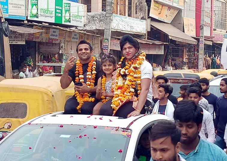 इस प्रतियोगिता में हरियाणा के 15 खिलाडिय़ों ने भाग लिया था। गीता का इस उपलब्धि पर आज खुली जीप में उनको बिठाकर घुमाया गया,जहां जगह -जगह लोगों ने शहर की बेटी की उपलब्धि पर उसका फूल मालाओं से स्वागत किया। अपनी इस उपलब्धि का श्रेय गीता ने अपने कोच अमित कुमार और अपने पति सुनीत कुमार सहित अपने परिवार को दिया। इस दौरान लायन फिटनेस जोन के सभी सदस्यों ने भी उनका जोरदार स्वागत किया और उनके उज्जवल भविष्य की कामना की। इस अवसर पर वरिष्ठ खिलाड़ी कुमरपाल डागर, लॉयन फिटनेस के मेम्बर सोनू, अर्जुन, सिद्धार्थ जैन, सुमित श्रीवास्तव, अभिषेक, आकाश तंवर, सलमान, सुमित गौतम, विष्णु तथा सौरभ कौशिक आदि ने मिलकर बधाईयां दी।
