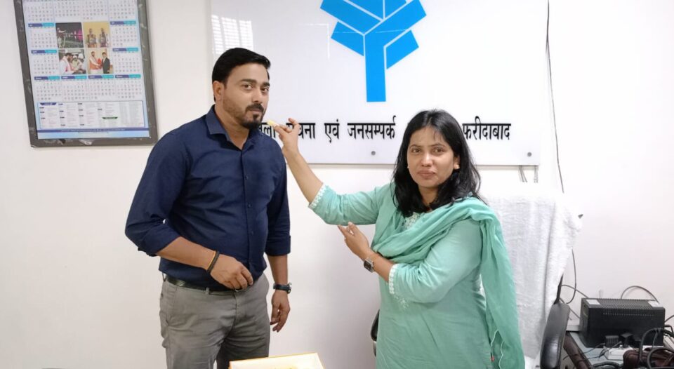 फरीदाबाद:जिला सूचना एवं जनसंपर्क कार्यालय फरीदाबाद में आज श्री हितेश ने सुपरिटेंडेंट के पद का कार्यभार ग्रहण किया। उनका स्थानांतरण रेवाड़ी से फरीदाबाद किया गया है।हितेश मूल रूप से रेवाड़ी के निवासी हैं। वह वर्ष 2002 से जिला सूचना एवं जनसंपर्क विभाग में अपनी सेवाएं दे रहे हैं। विभाग में लंबे अनुभव के साथ उन्होंने विभिन्न दायित्वों का सफलतापूर्वक निर्वहन किया है।डीआईपीआरओ मूर्ति दलाल एवं समस्त स्टाफ ने हितेश का स्वागत करते हुए उनके सफल कार्यकाल की शुभकामनाएं दीं। हितेश अपनी कर्तव्यनिष्ठा व जिम्मेदारियों के लिए भी जाने जाते हैं।