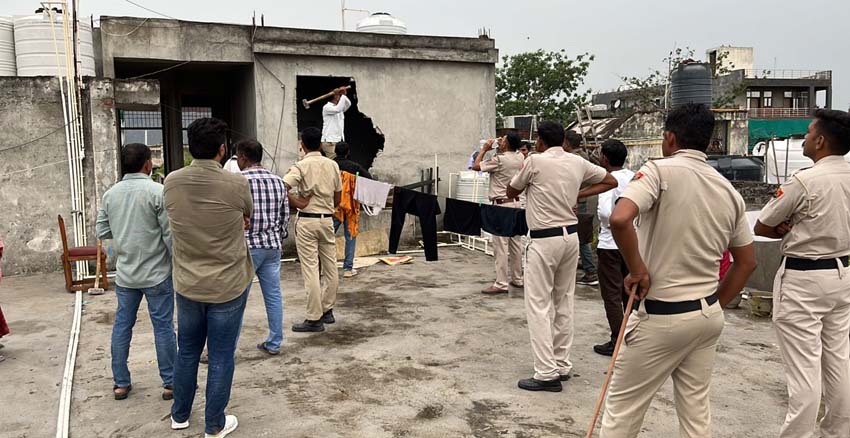 फरीदाबाद नगर निगम का सूरजकुंड स्थित दयालबाग के दो अलग -अलग अवैध निर्माणों पर चला हथौड़ा,तोडा डाला।