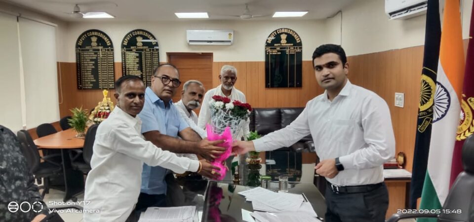 फरीदाबाद: व्यापार मंडल फरीदाबाद के जिला प्रधान तथा जननायक जनता पार्टी के जिला अध्यक्ष राजेश भाटिया ने आज सेक्टर-12 लघु सचिवालय पहुंचकर फरीदाबाद के नवनियुक्त जिला उपायुक्त विक्रम का बुके भेंट कर स्वागत किया। इस अवसर पर उनके साथ मुख्य रूप से डालचंद सारन, गगन अरोड़ा, बल्ली ठाकुर, ग्यासी राम, कमल राकेश आदि मौजूद थे।