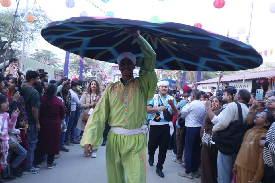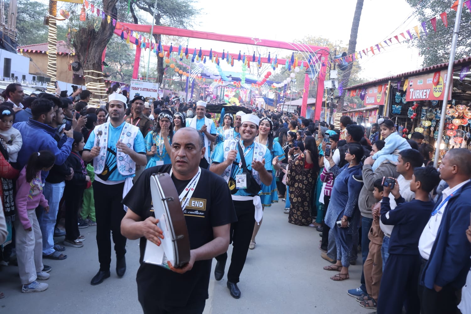 फरीदाबाद:सूरजकुंड में चल रहे 39वें अंतरराष्ट्रीय आत्मनिर्भर शिल्प मेले में हर शाम कार्निवाल परेड का आयोजन होता है, जिसमें पार्टनर देश मिस्त्र और थीम स्टेट उत्तर प्रदेश और मेघालय के साथ हरियाणा, पंजाब, अरुणाचल प्रदेश सहित देश के अन्य राज्यों के अलावा ईराक, कजाकिस्तान, ज़ाम्बिया, गांबिया, जोरडन, नाइजीरिया सहित अन्य देशों के कलाकार मंडली के साथ अपने पारंपरिक परिधान व ढोल, ताशे-बाजे, चिमटे आदि लेकर साथ निकलते हैं और दर्शकों का भरपूर मनोरंजन करते हुए चलते हैं। मेला परिसर में गेट नंबर एक से लेकर वीआईपी धनतेसरी गेट तक मेन रोड के दोनों ओर दर्शकों का हुजूम इस परेड को देखने के लिए खड़ा रहता है। पर्यटकों के बीच अपने-अपने मोबाइल फोन में इस परेड की तस्वीरों व वीडियो को कैद कर यादगार के रूप में भी रखा जा रहा है।