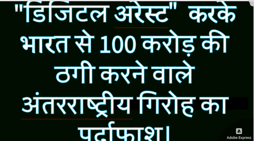 आतंकी हमले में शामिल होने का खौफ व डर दिखा, “डिजिटल अरेस्ट” करके भारत से 100 करोड़ की ठगी करने वाले गिरोह का पर्दाफाश।