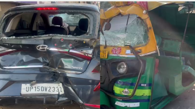 नोएडा के थाना फेस-1 क्षेत्र में, रजनीगंधा चौराहे के पास हुए भीषण एक्सीडेंट में पांच लोग घायल हो गए जिनमें से दो की हालत गंभीर बनी हुई है। यह एक्सीडेंट कार और थ्री व्हीलर के बीच हुआ. थ्री व्हीलर को टक्कर मारने के बाद कार डिवाइडर से टकरा गई. कार में बैठे चार लोग और टेंपो ड्राइवर घायल हो गया, जिन्हे इलाज के लिए अस्पताल में भर्ती कराया गया है। थ्री व्हीलर और हुंडई स्पोर्ट्स कार की हालत देखकर अंदाजा लगाया जा सकता है कि, यह एक्सीडेंट कितना भीषण था।