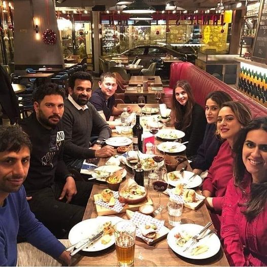 नई दिल्ली: अपनी पत्नी संग डिनर करते हुए भारत के महान पूर्व क्रिकेटर युवराज सिंह, आशीष नेहरा, अजीत अगरकर और जहीर खान की बेहतरीन तस्वीर सोशल मीडिया बड़ी तेजी के साथ वायरल हो रहा हैं , जिसे काफी पसंद किया जा रहा हैं। अब आप सभी इस वायरल तस्वीर को इस खबर में अवश्य देखें , और उस पल को भी आप याद करे जब क्रिकेट के मैदान यह सभी क्रिकेटर क्रिकेट खेल कर भारत का नाम रोशन दुनिया भर रोशन में किए थे। इस तस्वीर को देख कर इनके द्वारा बीते दिनों खेले गए “खेल; की याद आ गई।