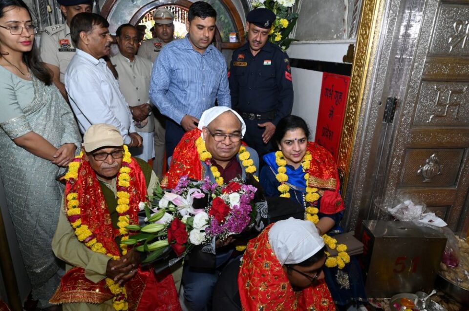 चंडीगढ़:हरियाणा के पुलिस महानिदेशक (DGP) अजय सिंघल ने आज अपनी धर्मपत्नी श्रीमती सीमा सिंघल के साथ पंचकूला स्थित विश्व प्रसिद्ध माता मनसा देवी मंदिर में श्रद्धा भाव से माथा टेककर विधि-विधान के साथ विशेष पूजा-अर्चना एवं हवन किया। इस दौरान उन्होंने प्रदेश की शांति, कानून-व्यवस्था की मजबूती और जनकल्याण के लिए मां भगवती से आशीर्वाद मांगा।