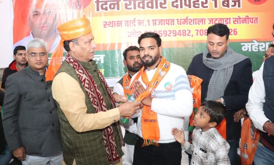 चंडीगढ़: भाजपा प्रदेश अध्यक्ष पंडित मोहन लाल बड़ौली ने रविवार को वार्ड नंबर 1, प्रजापति धर्मशाला जटवाड़ा सोनीपत में आयोजित कार्यक्रम के दौरान महेश प्रजापति की अगुवाई में कांग्रेस छोड़कर आए सैकड़ों लोगों को भाजपा में शामिल किया। उन्होंने सभी कार्यकर्ताओं को पार्टी का पटका पहनाकर उनका स्वागत किया और पार्टी में पूरा मान और सम्मान देने की बात कही। वहीं भाजपा में शामिल हुए सभी लोगों ने श्री बड़ौली को आश्वासन देते हुए कहा कि वे सभी मिलकर राष्ट्र निर्माण में अपनी अहम भूमिका निभाएंगे तथा पार्टी को और अधिक मजबूत करने का काम करेंगे।भाजपा प्रदेश अध्यक्ष पंडित मोहन लाल बड़ौली ने कहा कि भाजपा कार्यकर्ताओं की पार्टी है और कार्यकर्ता ही संगठन की ताकत है।