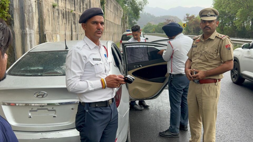 पंचकूला:आज पंचकूला-शिमला हाईवे पर सूरजपुर ट्रैफिक एसएचओ अभिषेक के नेतृत्व में की गई औचक चेकिंग के दौरान नियमों को ताक पर रखकर दौड़ रही एक सफेद वरना कार को इंपाउंड किया गया। मिली जानकारी के अनुसार पिंजौर क्षेत्र में मल्लाह मोड़ के नजदीक पुलिस टीम संदिग्ध वाहनों की चेकिंग कर रही थी तभी एक सफेद रंग की वरना कार वहां पहुंची। कार के शीशों पर न केवल गहरे रंग की प्रतिबंधित ब्लैक फिल्म चढ़ी हुई थी, बल्कि उस पर कोई नंबर प्लेट भी नहीं लगी थी। पुलिस ने तुरंत गाड़ी को रुकवाया और मौके पर ही वाहन चालक के खिलाफ सख्त कार्रवाई करते हुए 34,500 रुपये का चालान काटा। इसके साथ ही, नियमों का उल्लंघन करने पर कार को तुरंत इंपाउंड कर लिया गया और शीशों पर लगी काली फिल्म को मौके पर ही उतरवाया गया।