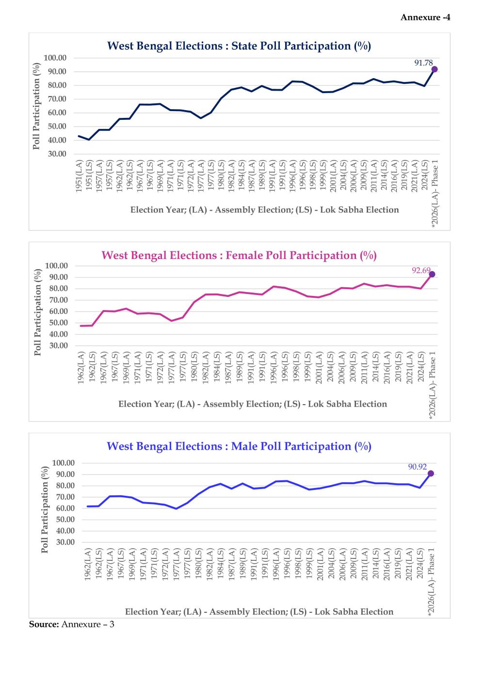 तमिलनाडु में क्रमशः 78.29% (2011 जीईएलए) और पश्चिम बंगाल में 84.72% (2011 जीईएलए) था। पिछले मतदान भागीदारी आंकड़ों का विवरण संलग्न है।