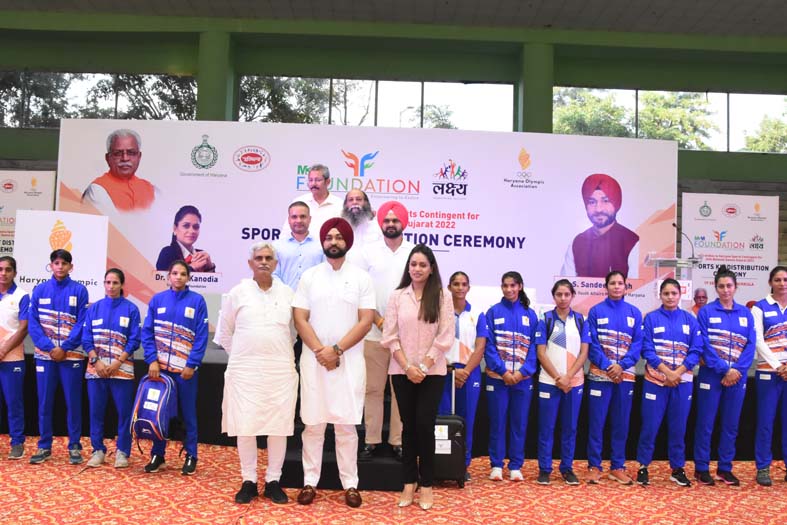पंचकूला:हरियाणा के खेल एवं युवा मामले राज्यमंत्री सरदार संदीप सिंह ने आज सेक्टर-3 स्थित ताउ देवीलाल खेल स्टेडियम के मल्टी पर्पज हाल में हरियाणा ओलंपिक एसोसिएशन के नये ’लोगो’ का लांच किया। इस अवसर पर खेल मंत्री ने गुजरात में आयोजित होने वाले 36वें राष्ट्रीय खेलों में भाग लेने वाले हरियाणा के खिलाड़ियों और कोचो को स्पोर्ट्स किट वितरित की। इस अवसर पर खेल विभाग के निदेशक पंकज नैन, हरियाणा ओलंपिक एसोसिएशन के वाईस प्रेजीडेंट व राष्ट्रीय खेल गुजरात सीडीएम सरदार विक्रम सिंह, हरियाणा ओलंपिक एसोसिएशन के वाईस प्रेजीडेंट सूरज पाल अम्मू, खजांची एवं पूर्व मंत्री मनीष ग्रोवर, एमथ्रीएम फाउंडेशन की ट्रस्टी डाॅ पायल कनोडिया भी उपस्थित थे। खेल मंत्री सरदार संदीप सिंह ने बताया कि 36वे राष्ट्रीय खेल 27 सितंबर से 10 अक्टूबर 2022 तक गुजरात के अहमदाबाद, गांधीनगर, सूरत, वडोदरा, राजकोट और भावनगर में आयोजित किए जाएंगे। इसमें हरियाणा की 618 सदस्यीय टीम भाग लेगी, जिसमें 294 महिला खिलाड़ी तथा 324 पुरूष खिलाड़ी शामिल हैं। राष्ट्रीय खेलों में टीमों के प्रोत्साहन के लिये 142 महिला कोच और 122 पुरूष कोच भी गुजरात जायेंगे।