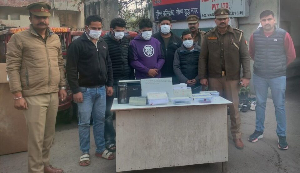 नोएडा पुलिस ने फर्जी कॉल सेंटर का किया भंडाफोड़, 80 लाख सीज, मास्टरमाइंड समेत 5 गिरफ्तार।