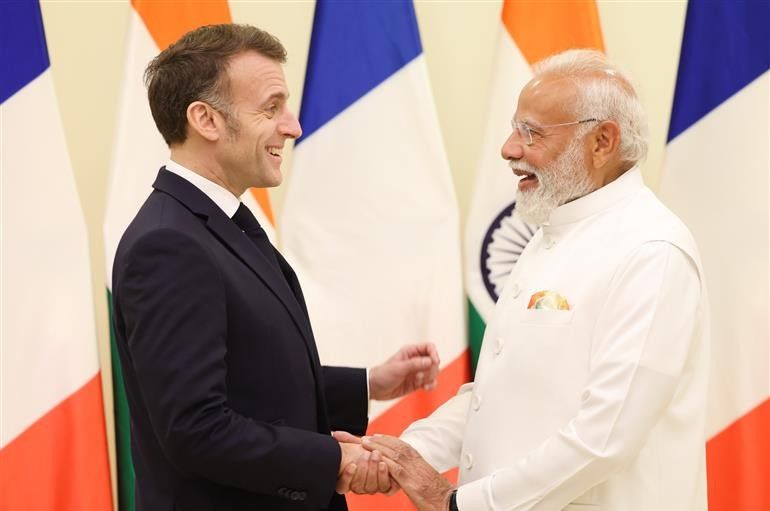 प्रधानमंत्री नरेन्द्र मोदी ने फ्रांस के राष्ट्रपति इमैनुएल मैक्रॉन का हार्दिक स्वागत करते हुए यह भरोसा जताया कि यह यात्रा भारत-फ्रांस संबंधों को नई ऊंचाइयों पर ले जाएगी।राष्ट्रपति मैक्रॉन की यात्रा के महत्व को रेखांकित करते हुए प्रधानमंत्री मोदी ने कहा कि पहले मुंबई और फिर दिल्ली में होने वाली बैठकों में दोनों देशों के बीच कार्यनीतिक साझेदारी को नई गति मिलेगी। उन्होंने कहा कि दोनों देशों के बीच सहकार्य से न केवल दोनों देशों बल्कि व्यापक वैश्विक समुदाय को भी लाभ मिलता रहेगा।एक्स पर अलग-अलग पोस्ट में मोदी ने लिखा:“भारत में आपका स्वागत है! भारत आपकी यात्रा और हमारे द्विपक्षीय संबंधों को नई ऊंचाइयों पर ले जाने के लिए उत्सुक है। मुझे विश्वास है कि हमारी चर्चाएं विभिन्न क्षेत्रों में सहयोग को और मजबूत करेंगी और वैश्विक प्रगति में योगदान देंगी।