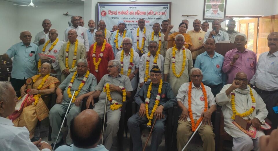 फरीदाबाद: विश्व वरिष्ठ नागरिक दिवस के अवसर पर रिटायर्ड कर्मचारी संघ फरीदाबाद ने 80 वर्ष और 80 वर्ष से ऊपर की आयु वाले रिटायर कर्मचारियों को स्मृति चिन्ह व शाल देकर तथा फूलमाला पहनाकर सम्मानित किया और सभी के साथ लंच किया। इस मौके पर 20 रिटायर्ड कर्मचारियों को सम्मानित किया गया। जिनमें श्रीमती कांता खुल्लर, चुन्नू राम, इंद्रजीत, बलवीर, रामप्रसाद, एम.पी. विज, राममेहर शर्मा, धर्मवीर नरवत, हेतराम, सी. एल. गेरा आदि ने भाग लिया। जिसमें डालचंद तंवर रिटायर्ड Z.T.O.(नगर निगम फरीदाबाद) सबसे अधिक 90 वर्ष के हैं और टी. डी. जटवानी रिटायर्ड प्रशासनिक अधिकारी नगर निगम फरीदाबाद जो की 89 वर्ष के हैं। सभी वरिष्ठ रिटायर्ड कर्मचारी सम्मान को पाकर अपने आप को गौरांवित महसूस कर रहे थे। और एक दूसरे से मिलकर खुशी जाहिर कर रहे थे। विश्व वरिष्ठ नागरिक दिवस पर मुख्य वक्ता अखिल भारतीय राज्य कर्मचारी महासंघ के राष्ट्रीय अध्यक्ष श्री सुभाष लांबा थे।