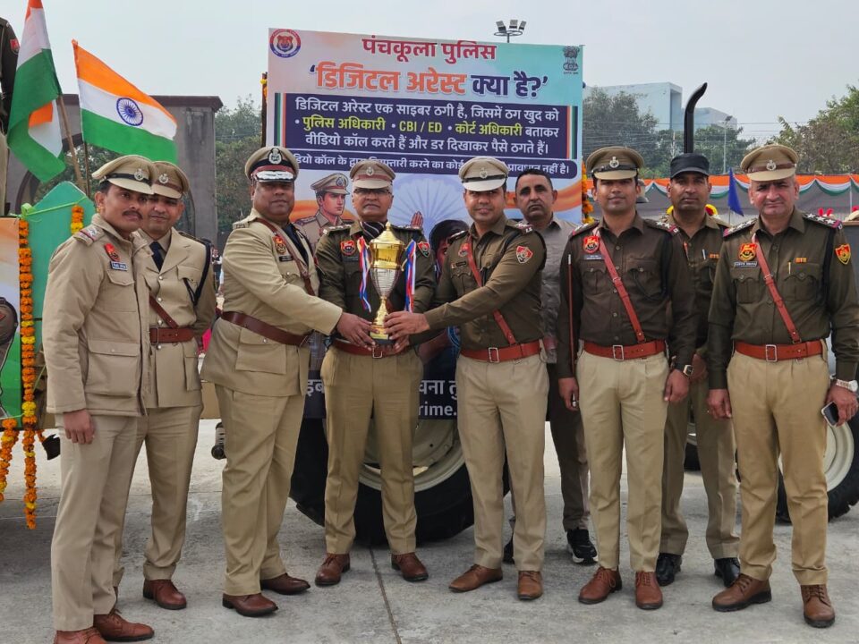 समारोह के दौरान विभिन्न विभागों द्वारा निकाली गई झांकियों में पंचकूला पुलिस की ‘डिजिटल अरेस्ट और साइबर जागरूकता’पर आधारित झांकी मुख्य आकर्षण का केंद्र रही। इस झांकी को प्रतियोगिता में द्वितीय स्थान प्राप्त हुआ। राज्यपाल ने साइबर थाना एसएचओ युद्धवीर सिंह और उनकी पूरी टीम को ट्रॉफी प्रदान कर बधाई दी। झांकी में साइबर टीम के सदस्यों ने एक सजीव अभिनय के माध्यम से दिखाया कि किस तरह साइबर ठग नकली पुलिस अधिकारी बनकर लोगों को डराते हैं और ‘डिजिटल अरेस्ट’ के नाम पर ठगी को अंजाम देते हैं। इस प्रस्तुति को दर्शकों ने खूब सराहा और यह लोगों को शिक्षित करने का एक प्रभावी माध्यम बनी।परेड में महिला सशक्तिकरण का नजारा भी देखने को मिला, जहां महिला पीएसआई पूजा के नेतृत्व में पंचकूला पुलिस की महिला प्लाटून ने अत्यंत अनुशासित और शानदार मार्च पास्ट किया।समारोह के दौरान पंचकूला के पुलिस कमिश्नर (एडीजीपी) शिवास कविराज स्वयं मौजूद रहे और उन्होंने पूरी टीम का उत्साहवर्धन किया। उनके साथ डीसीपी पंचकूला सृष्टि गुप्ता और डीसीपी क्राइम एवं ट्रैफिक मनप्रीत सिंह सूदन ने भी जवानों की हौसला अफजाई की और इस उपलब्धि को पूरी टीम की मेहनत का परिणाम बताया।