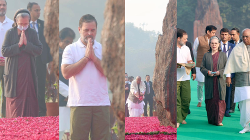 देश की पूर्व प्रधानमंत्री इंदिरा गांधी 108 वीं जयंती पर सोनिया , राहुल , और खरगे ने आज श्रद्धांजलि अर्पित की।