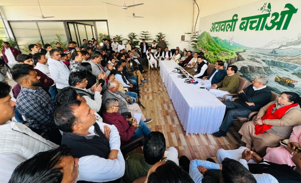 उन्होंने कहा कि केंद्र सरकार और हरियाणा सरकार ने भी बिल्डर लॉबी, माइनिंग लॉबी, बड़े-बड़े इंडस्ट्रियलिस्ट, बिजनेस हाउसेस से संबंधित लॉबीज के दबाव में उनसे मिलीभगत करके 100 मीटर की परिभाषा गढ़ने की पहल की है। सुप्रीम कोर्ट ने नया जो स्टैंड लिया, इसके पीछे पूरी तरीके से भारतीय जनता पार्टी की केंद्र की सरकार और प्रदेश की बीजेपी सरकारों की गलत पैरवी जिम्मेदार है। सांसद दीपेन्द्र हुड्डा ने बताया कि संसद के शीतकालीन सत्र में और हरियाणा विधान सभा में भी पर्यावरण तथा अरावली मुद्दे पर कांग्रेस पार्टी ने नोटिस दिया लेकिन सरकार ने चर्चा तक करने से मना कर दिया। अगर पर्यावरण और अरावली को बचाने, गुरुग्राम, फरीदाबाद के मुद्दों की चर्चा देश की संसद या हरियाणा विधानसभा में नहीं होगी तो क्या अमेरिका के सीनेट में और लंदन के हाउस ऑफ कॉमंस में होगी। उन्होंने कहा कि बीजेपी योजनाओं का नाम बदल देती है अब अरावली की परिभाषा ही बदल दी। क्या परिभाषा बदलने से अरावली बच जाएगी?इस अवसर पर प्रमुख रूप से विधायक आफताब अहमद, हरियाणा प्रदेश कांग्रेस के कार्यकारी अध्यक्ष जितेंद्र भारद्वाज, पूर्व मंत्री सुखबीर कटारिया, गुड़गांव शहर कांग्रेस जिला अध्यक्ष पंकज डावर, गुड़गांव ग्रामीण कांग्रेस जिला अध्यक्ष वर्धन यादव, सुधीर चौधरी, गुड़गांव से कांग्रेस प्रत्याशी रहे मोहित ग्रोवर, रेवाड़ी ग्रामीण कांग्रेस जिलाध्यक्ष सुभाष चंद छाबड़ी, पटौदी से कांग्रेस प्रत्याशी रही पर्ल चौधरी, गुड़गांव से मेयर प्रत्याशी रही सीमा पाहुजा,पार्षद सतपाल, मनीष खटाना आदि मौजूद रहे।