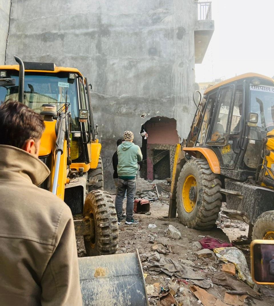 दो अपराधियों के अवैध घरों पर चला गुरुग्राम पुलिस प्रशासन का बुलडोजर -किया ध्वस्त।