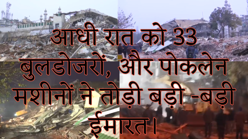 दिल्ली: बीती रात पुरानी दिल्ली में आधी रात एमसीडी की टीम भारी पुलिस फोर्स और 33 अर्थमूवर मशीनों के साथ फैज़-ए-इलाही मस्जिद, तुर्कमान गेट के पास भारी भरकम अतिक्रमण एवं अवैध कब्जों को ढाह दिया, का दृश्य,एमसीडी ने दिल्ली उच्च न्यायालय के निर्देशों के अनुसार आज तड़के एक अतिक्रमण पर विध्वंस अभियान चलाया। हालांकि मस्जिद बिल्कुल सुरक्षित है। अधिकारी की मानें तो अब तक 36000 स्कवायर फ़ीट जगहों को खाली कराया गया है। इसमें एक बैंकेट हॉल और एक दो मंजिला डायग्नोस्टिक सेंटर मुख्य रूप से शामिल है।