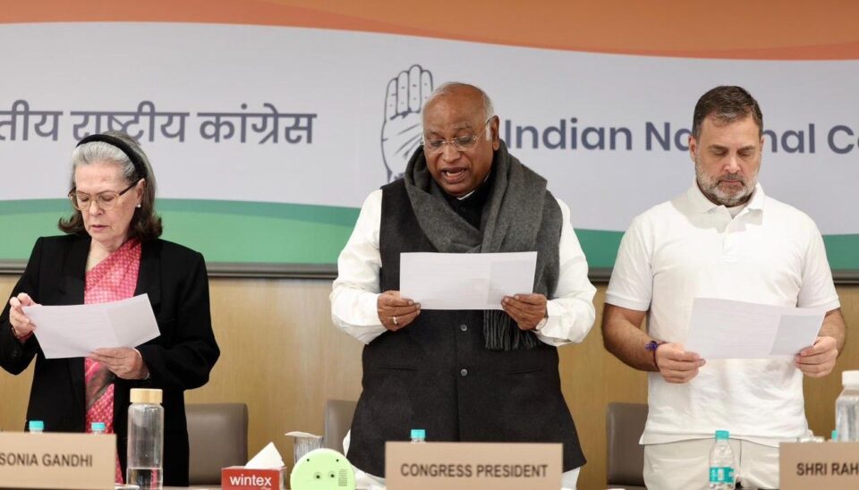 नई दिल्ली:कांग्रेस ने मोदी सरकार द्वारा मनरेगा योजना खत्म किए जाने के विरोध में आर-पार की लड़ाई का संकल्प लेते हुए फैसला लिया है कि आगामी 5 जनवरी से देशभर में ‘मनरेगा बचाओ अभियान’ शुरू किया जाएगा। यह फैसला शनिवार को इंदिरा भवन स्थित कांग्रेस मुख्यालय में आयोजित हुई कांग्रेस कार्य समिति की बैठक में लिया गया। इसकी अध्यक्षता कांग्रेस अध्यक्ष मल्लिकार्जुन खरगे ने की। बैठक में कांग्रेस संसदीय दल की अध्यक्ष सोनिया गांधी, लोकसभा में विपक्ष के नेता राहुल गांधी, कर्नाटका, हिमाचल प्रदेश और तेलंगाना के मुख्यमंत्रियों, अनेक पूर्व मुख्यमंत्रियों सहित अन्य वरिष्ठ नेता मौजूद थे। बैठक के बाद पत्रकार वार्ता को संबोधित करते हुए मल्लिकार्जुन खरगे ने बताया कि कांग्रेस कार्य समिति ने मनरेगा की हर कीमत पर रक्षा करने की शपथ ली है और देशभर में बड़ा आंदोलन करने का फैसला लिया है। उन्होंने कार्य समिति की बैठक में ली गई शपथ के पांच प्रमुख बिंदु दोहराते हुए बताया कि आगामी 5 जनवरी से देशभर में ‘मनरेगा बचाओ अभियान’ शुरू किया जाएगा। मनरेगा की हर हाल में रक्षा की जाएगी। मनरेगा कोई योजना नहीं, भारत के संविधान से मिला काम का अधिकार है। ग्रामीण मजदूरों के सम्मान, रोजगार, मजदूरी व समय पर भुगतान के अधिकार के लिए संघर्ष किया जाएगा, मांग-आधारित रोजगार और ग्राम सभा के अधिकार की रक्षा की जाएगी। मनरेगा से महात्मा गांधी का नाम हटाने और मजदूर के अधिकार को खैरात में बदलने की हर साजिश का लोकतांत्रिक विरोध किया जाएगा। गांव-गांव तक आवाज बुलंद कर मजदूरों के अधिकारों की रक्षा की जाएगी।