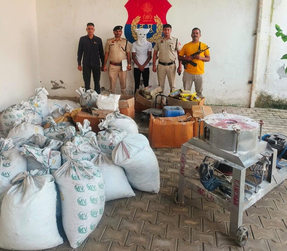 पलवल:अपराध शाखा होडल की टीम ने आज शुक्रवार को गुरुवार की रात को एक खेत में अवैध रूप से चलाई जा रही पटाखे की फैक्ट्री का पर्दाफाश किया है। पुलिस टीम ने छापेमारी के दौरान लगभग 1900 किलोग्राम पटाखे बरामद किए है। मौके पर पटाखे बना रहे एक आरोपित को गिरफ्तार किया है, जिसका नाम मोहिल है। इस संबंध में एक एफआईआर थाना मुड़कती पलवल में दर्ज किया गया है। अब पुलिस फैक्ट्री के मालिक के तलाश में जुट गई है। इंचार्ज जगमिंदर सिंह के अनुसार मामले में पुलिस को 16 अक्टूबर की रात को सूचना मिली थी कि मानपुर गांव के खेतों में चारदीवारी के अंदर अवैध रूप से पटाखे बनाने की फैक्ट्री चलाई जा रही है। सूचना पर उप निरीक्षक हरदोई लाल के नेतृत्व में उनकी टीम ने तुरंत मानपुर के खेतों में बनी फैक्ट्री पर छापा मारा। मौके पर एक युवक को पटाखे बनाते हुए रंगे हाथों पकड़ा। पूछताछ में उसने अपना नाम स्वामीका का रहने वाला मोहिल पुत्र खुर्शीद बताया। मोहिल ने पुलिस को बताया कि यह फैक्ट्री हथीन के रहने वाले अल्लू उर्फ अलीमुद्दीन द्वारा चलाई जा रही है। फैक्ट्री चलाने का कोई लाइसेंस उनके पास नहीं है। पुलिस टीम ने फैक्ट्री की तलाशी ली, जहां 28 प्लास्टिक कट्टों में भरे तिल्ली पटाखे मिले, जिनका कुल वजन 1899 किलो 83 ग्राम था। इसके अलावा तीन पेटी में तैयार तिल्ली पटाखे की डिब्बी जिनका वजन 119 किलो 59 ग्राम और एक पेटी तिल्ली पटाका पैकिंग जिनका वजन तीन किलो 710 ग्राम भी बरामद हुई। पटाखा निर्माण के लिए रखी गई सामग्री में करीब 18 किलो पोटाश, 14 किलो नमक और 45 किलो कोयला पाउडर भी मिला। मौके से एक चरखी मय बिजली मोटर और एक इलेक्ट्रॉनिक कांटा भी जब्त किया गया। अवैध विस्फोटक सामग्री को नियमानुसार कब्जा पुलिस में लिया गया। तथा आरोपित के खिलाफ थाना मुंडकटी में एफआईआर संख्या 272 दिनांक 17.10.2025 धारा 9(B) EXPLOSIVE ACT के तहत मुकदमा दर्ज करके आगामी कार्यवाही अमल में लाई जा रही है ।