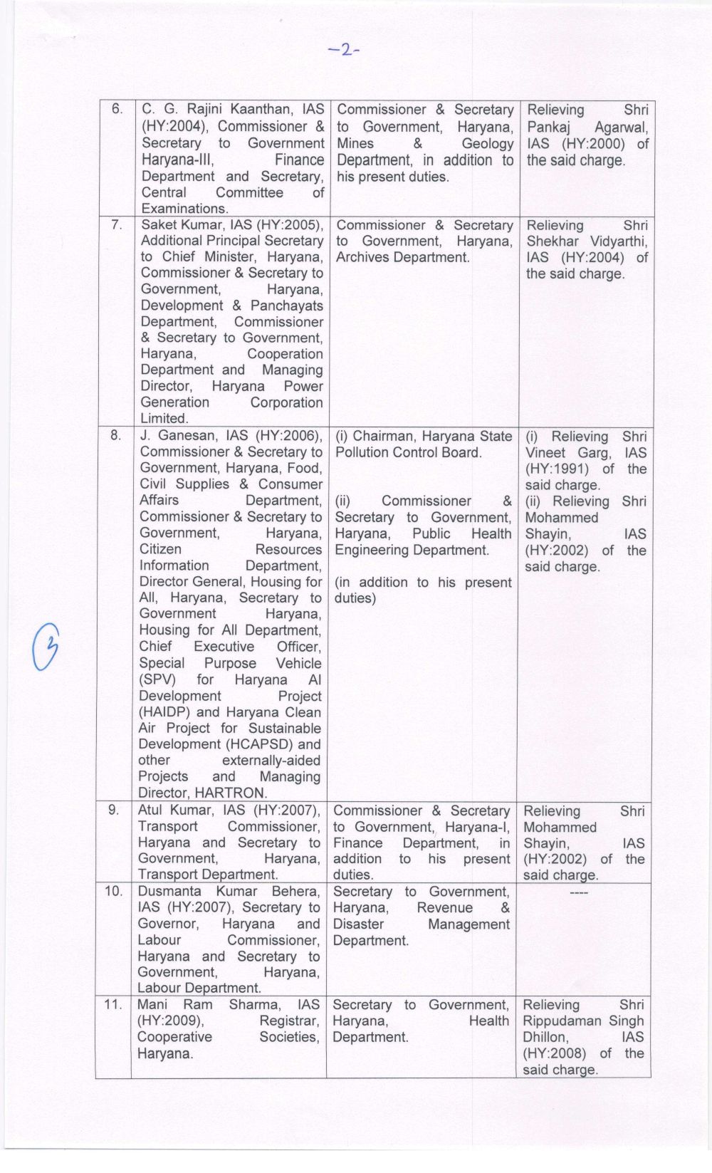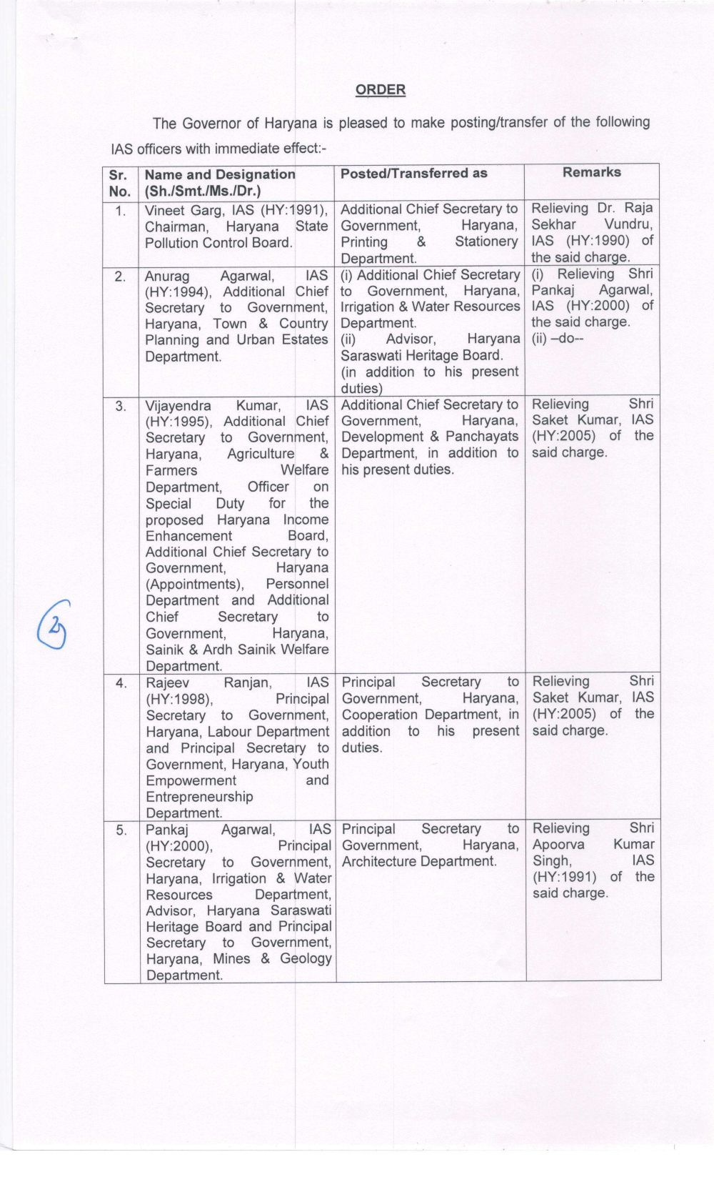 चंडीगढ़: हरियाणा सरकार ने आज बुधवार को तुरंत प्रभाव से 15 आईएएस अधिकारियों के तबादले एवं नियुक्ति आदेश जारी किए है। जारी की गई लिस्ट को इस खबर में प्रमुखता से प्रकाशित की गई है जिसमें आप सभी नवनियुक्त आईएएस अधिकारियों के नाम पढ़ सकते है। तबादले लिस्ट कुल पांच पेजों में है।