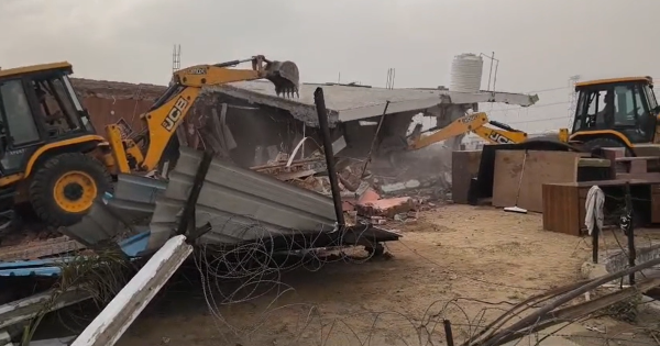 दो आदतन अपराधियों मकान और ऑफिस पर चला गुरुग्राम पुलिस प्रशासन का बुलडोजर, किया ध्वस्त -वीडियो देखें।