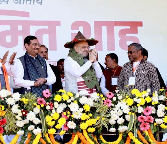 केंद्रीय गृह एवं सहकारिता मंत्री और भारतीय जनता पार्टी के वरिष्ठ नेता अमित शाह ने आज शनिवार को चाईबासा के टाटा कॉलेज ग्राउंड में विजय संकल्प महारैली से झारखंड चुनाव प्रचार अभियान का शंखनाद किया। मंच पर पहुँचने पर शाह ने सबसे पहले भगवान्बि रसा मुंडा को पुष्पांजलि अर्पित कर श्रद्धांजलि दी। उन्होंने यहाँ के वीर विभूतियों और महान आदिवासी नेताओं को भी नमन किया। उनका जनजातीय पत्ता का टोपी, पत्ता का माला, प्रतीक चिन्ह समेत अन्य चीजें देकर स्वागत किया गया। उनके पहुंचने के साथ ही जय राम के नारे से पूरा सभास्थल गुंजायमान हो उठा।